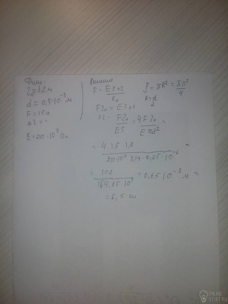 На сколько удлинится стальная проводка длинной 1,8 м и диаметром 0,5 мм под действием груза в 15 н