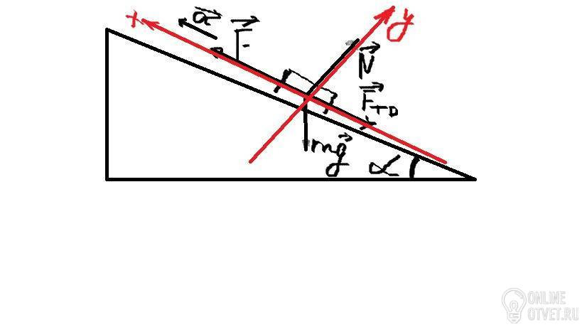 OY: N- mg sinα =0 отсюда N=mg sinα. Fтр= μmgsinα, получаем? подставляя в первое уравнение: