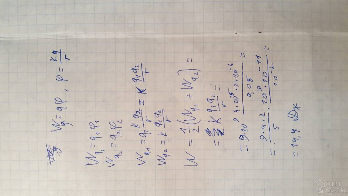Чему равна энергия системы из двух зарядов q1 и q2, находящихся на расстоянии r друг от друга.