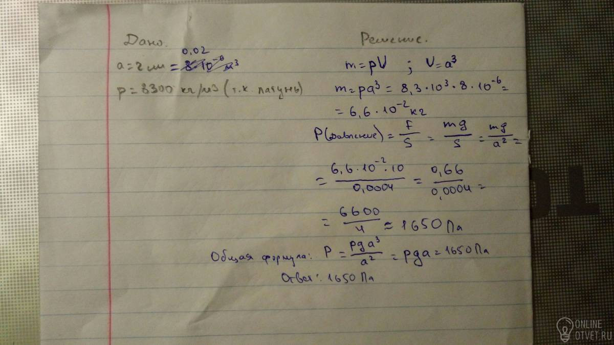 Определите давление, которое латунный кубик с длиной ребра 2 см оказывает на горизонтальный стол.
