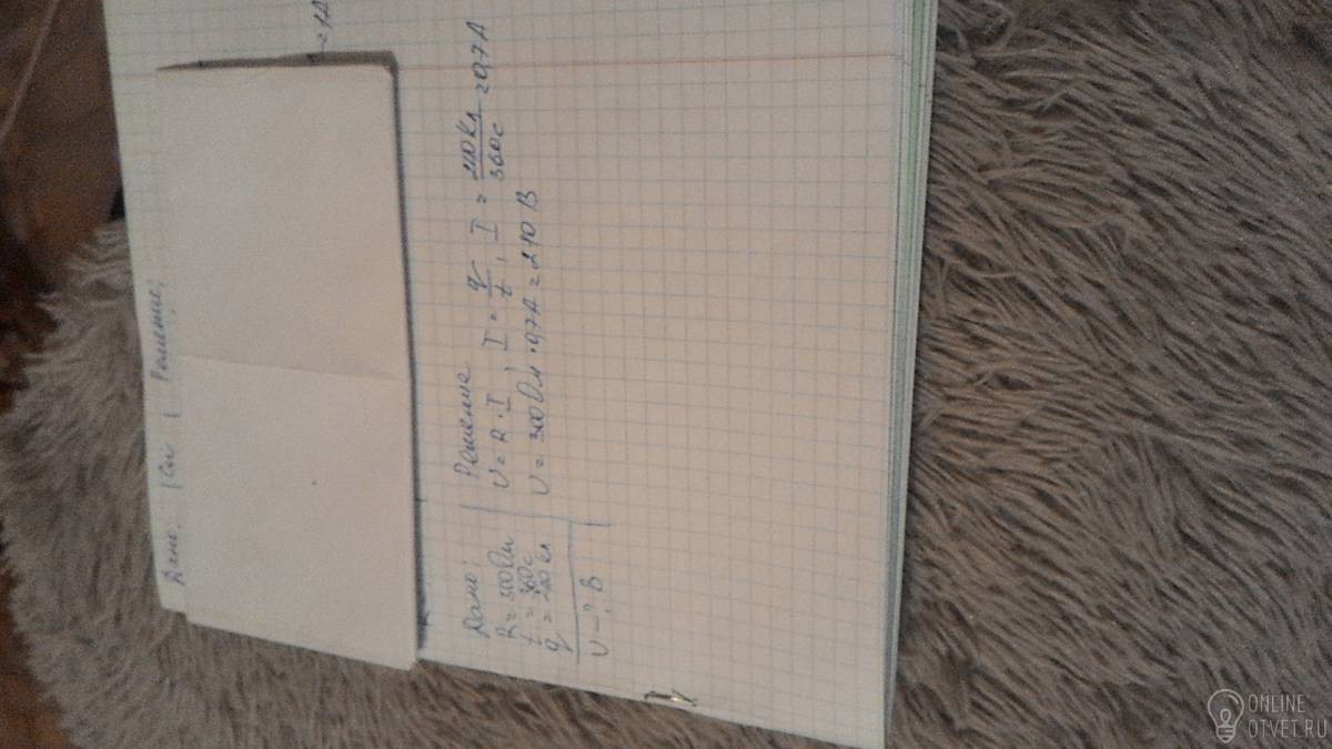 Определите напряжение на клеммах электрической плитки, если сопротивление ее спирали R = 300 Ом, а за время t = 360 с прошел заряд q = 240 Кл.