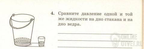 По закону Паскаля давление жидкости зависит только от глубины. Так что давление жидкости на дно стакана во столько же раз меньше давления на дно ведра, во сколько глубина стакана меньше глубины ведра.