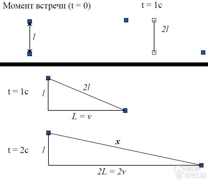 между автомобилями в начальный момент времени, а гипотенуза это расстояние между автомобилями