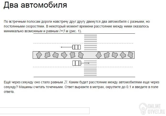 Через 1 секунду автомобили разъехались в разные стороны и расстояние между ними стало