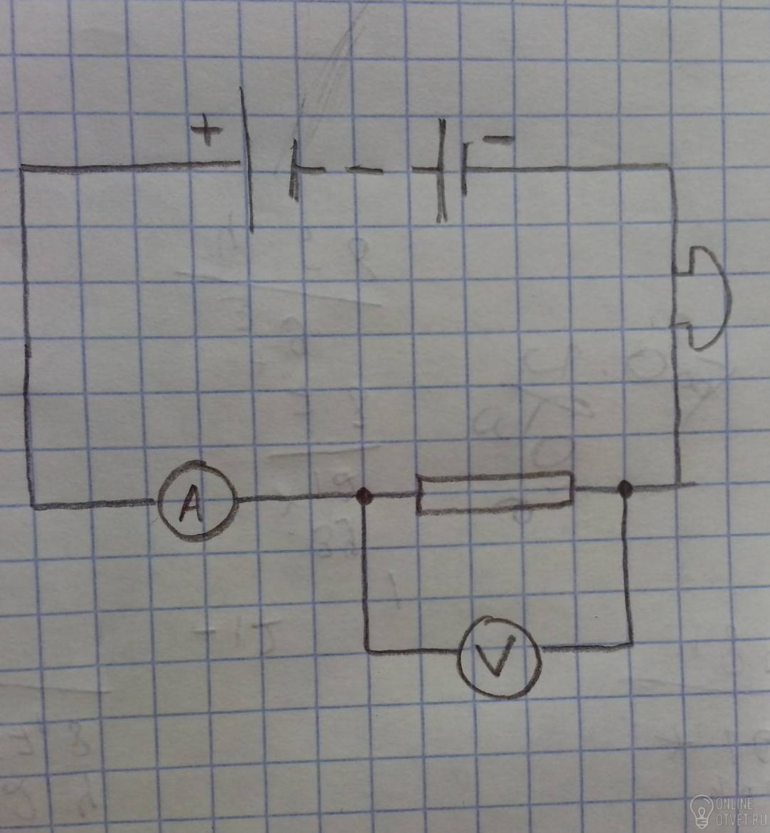 Начертите схему электрической цепи, состоящей из источника тока, звонка, амперметра, резистора, соединенных последователно. Включите в цепь вольтметр для измерения напряжения резисторе