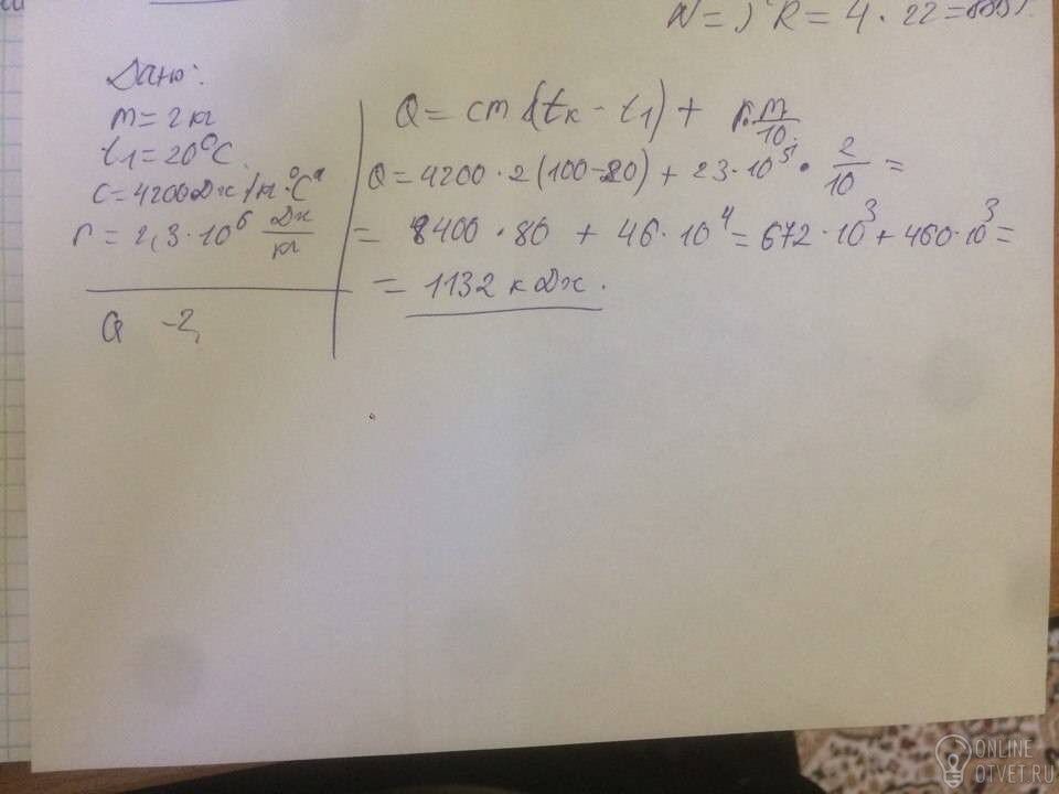 Какое кол-во теплоты потребуется что бы 2 кг воды довести до кипения и 1/10 ее часть испарить. Начальная температура воды 20 %.Решите пожалуйста с дано. Дам 20 балов