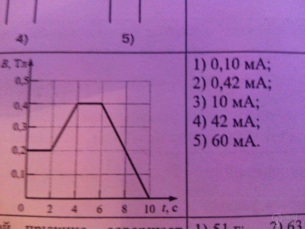 Проводящее кольцо радиусом r=2 см и изготовленное из проводника сопротивлением R = 0,30 Ом, помещено в однородное магнитное поле, линии индукции которого перпендикулярны плоскости кольца. Зависимость модуля индукции магнитного поля от времени приведена на рисунке. Найдите силу тока в кольце в момент времени t0=8с.