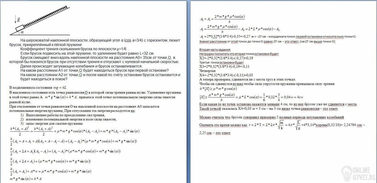 A0 = 35см от точки О, в которой бы покоился брусок при отсутствии
