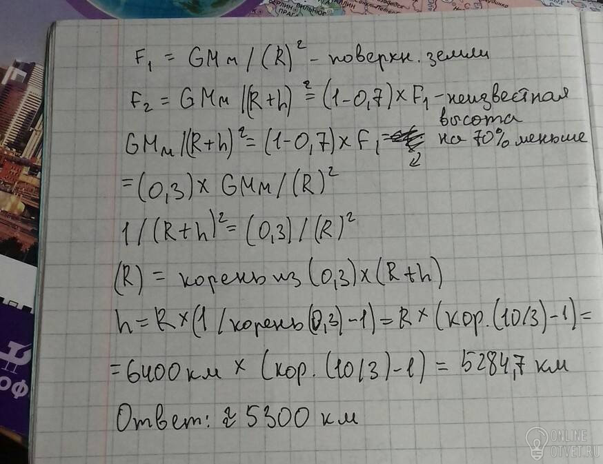 На какой высоте земное притяжение будет на 70% меньше, чем на поверхности Земли?