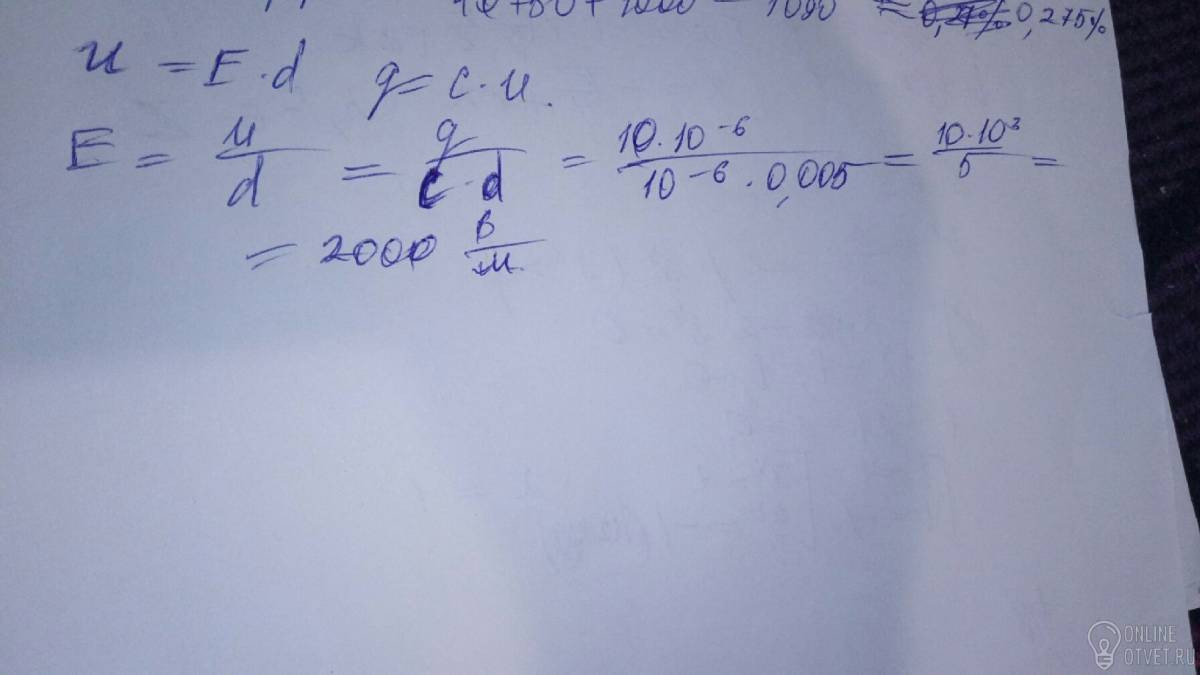 20 БАЛЛОВ ... Плоский воздушный конденсатор ёмкостью 1 мкФ соединились источником напряжения в результате чего он приобрёл заряд 10 мкКл.Расстояние между пластинами 5 мм. Определите напряженность поля внутри конденсатора