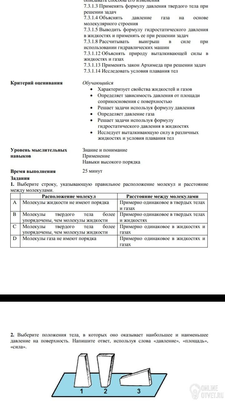 1-ответ В,так как молекулы и атомы твёрдого тела расположены в определённом порядке и образуют кристаллическую решётку. Такие твёрдые вещества называют кристаллическими. Атомы совершают колебательные движения около положения равновесия, а притяжение между ними очень велико. Поэтому твёрдые тела в обычных условиях сохраняют объём и имеют собственную форму.
