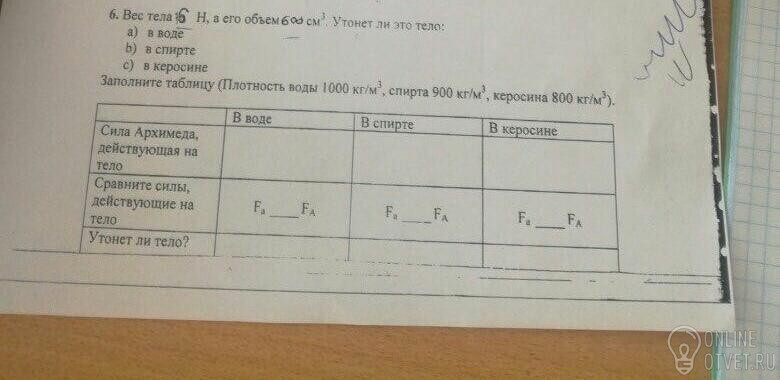ρ=6/0,0006*10=1000 (кг/м3) - плотность тела