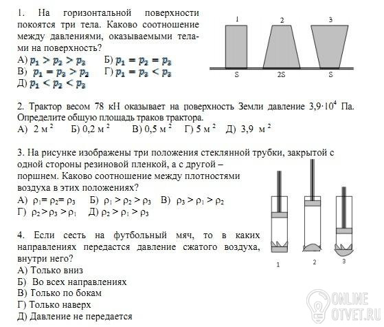 1) давление зависит прямо пропорционально силе и обратно пропорционально площади поверхности.