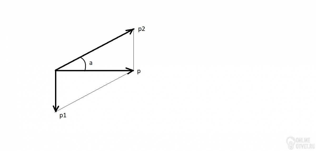 Снаряд движущийся горизонтально разорвался на два осколка, один из которых полетел вертикально вниз. Укажите направление импульса осколка 2.