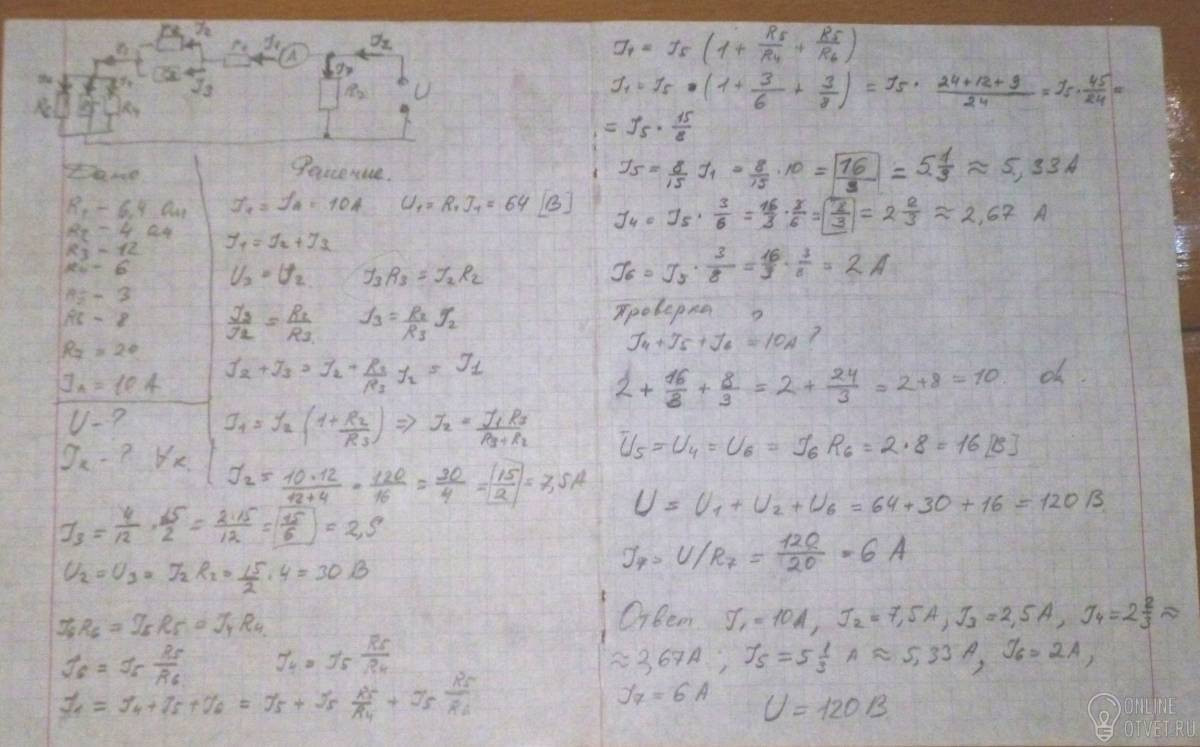 Картинка не очень, правда. Это черновик, на котором проверялось решение. Можете потом перерисовать красиво. Способов решения несколько. Можно так, как CptBrawis считать общие сопротивления участков с параллельными резисторами (только правильно считать). Там, где он правильные формулы проверял, ответы для I2, I3 совпадали.