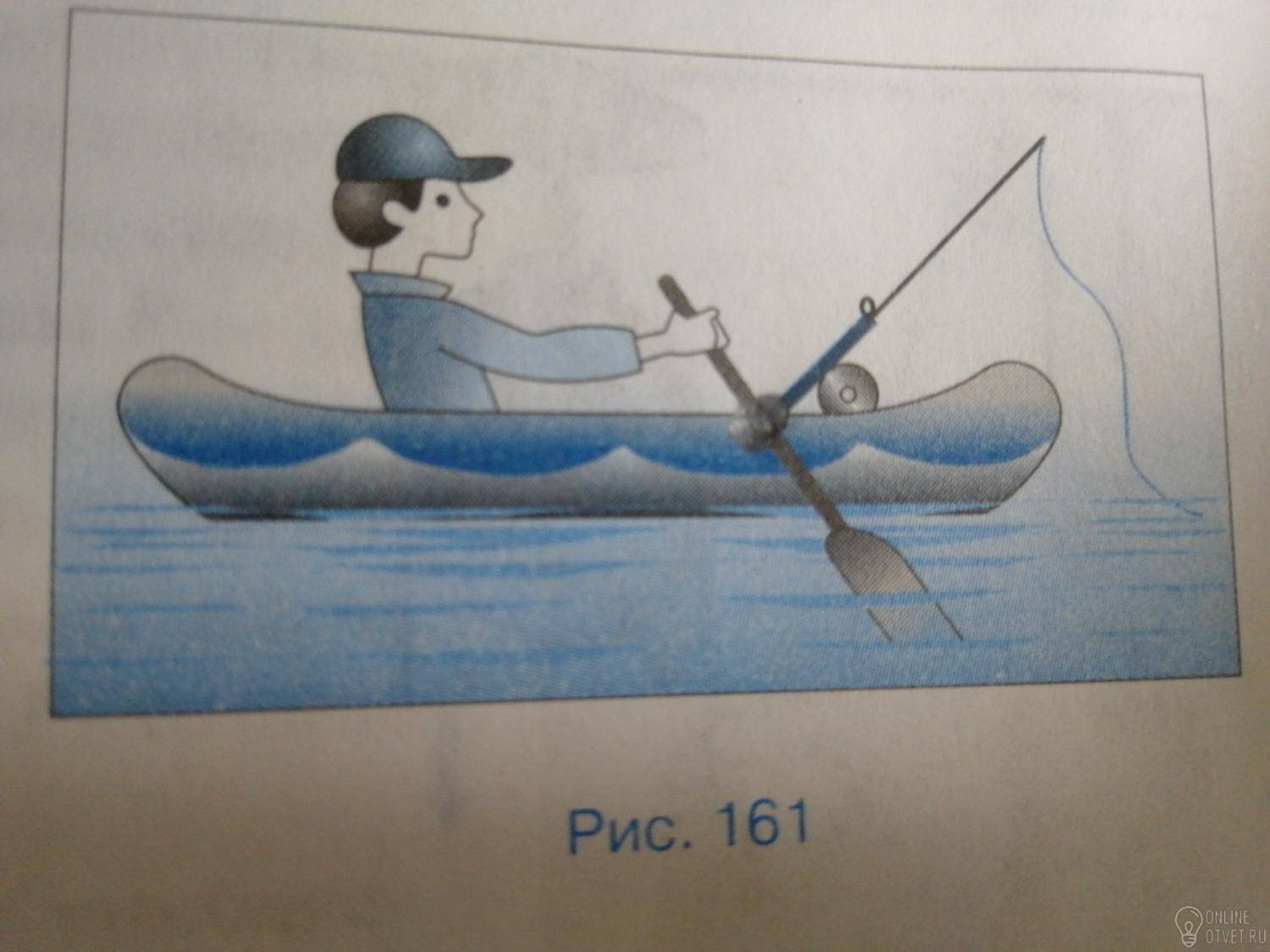 Но расстояние, на которое человек передвигает свой конец весла, гораздо меньше, чем расстояние, на которое смещается лодка. Второй конец весла перемещается относительно лодки гораздо дальше. Правда весло отталкивается от воды не так, как от твердого тела, весло немного сдвигается внутри воды. Чтобы этот сдвиг был меньше, на концах весел лопасти. Это позволяет сильнее отталкиваться от воды. Представь, что лопастей нет, просто палка, вообще никуда не поплывешь, палка пройдет сквозь воду.