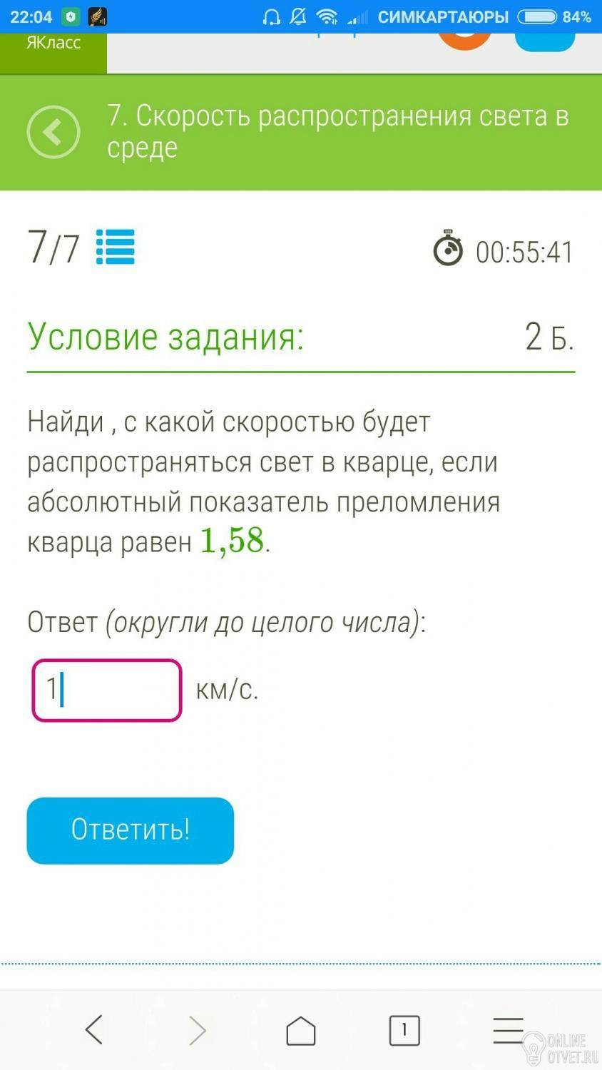 v2=3*10^8(скорость света)/1,58=189873417,722м/с=189873,417722км/с≈189873км/с