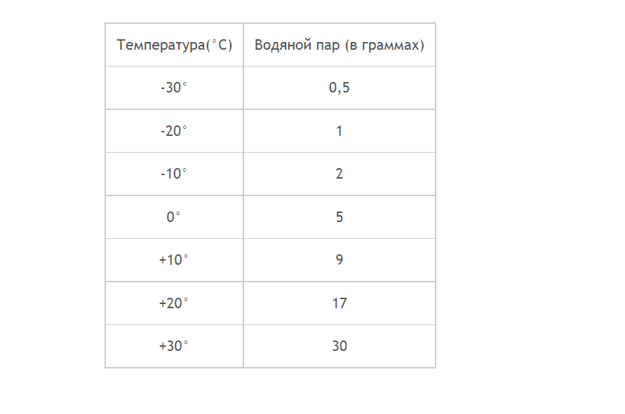 Температура воздуха 18,4, а дефицит влажности составляет 5 мм. Сколько граммов водяного пара в 1м3?