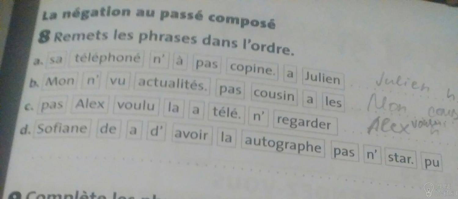 a. Julien n'a pas téléphoné à sa copine.