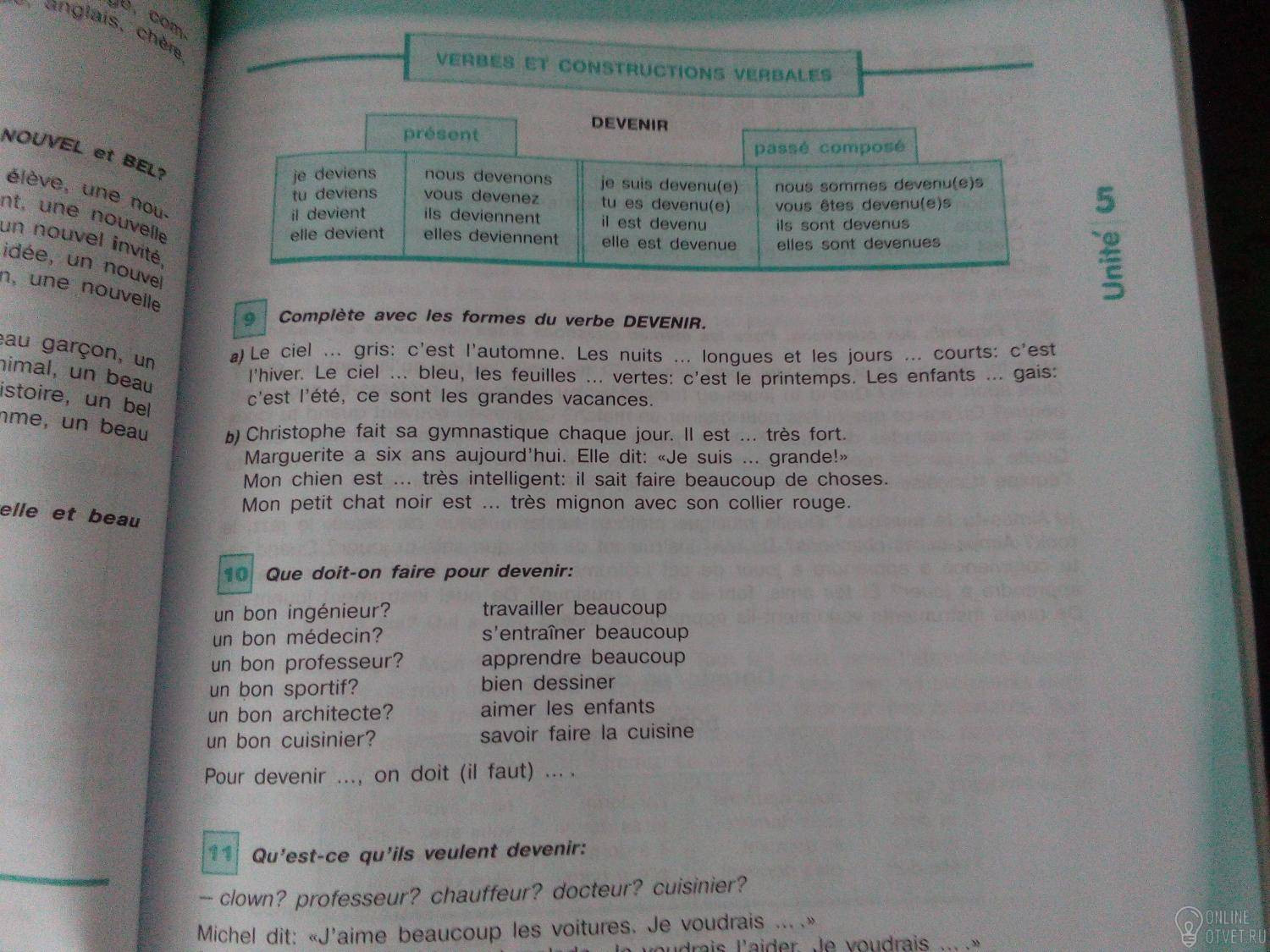 3)...devient....deviennent...…(Небо становится голубым, листья становятся зелеными: это весна.)
