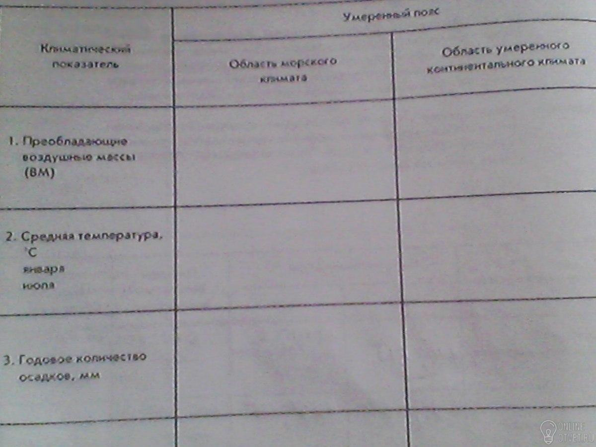 1) умеренные воздушные массы,