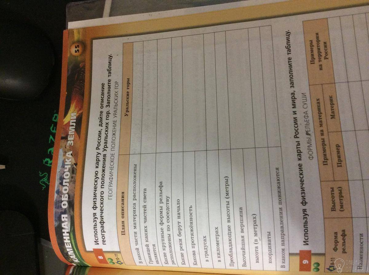 1. Уральские горы расположены между Восточно-Европейской и Западно-Сибирской равнинами.