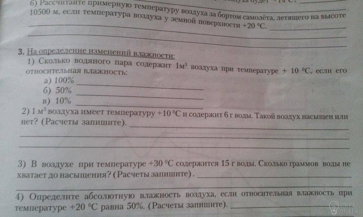 №2.при температуре +10 м в 1 м.куб содержится 9 гр., по условию - 6 гр. - воздух ненасыщен.