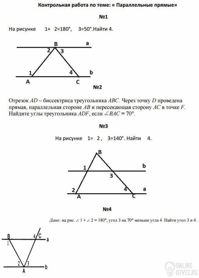 Угол 3 = углу 4 отсюда следует, что угол 4 = 50 градусам(по свойству накрест лежащих углов)