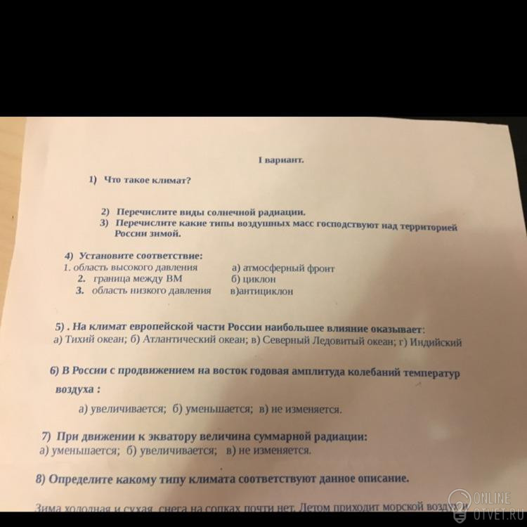 1. Климат - это многолетний режим погоды,характерные для одной местности.