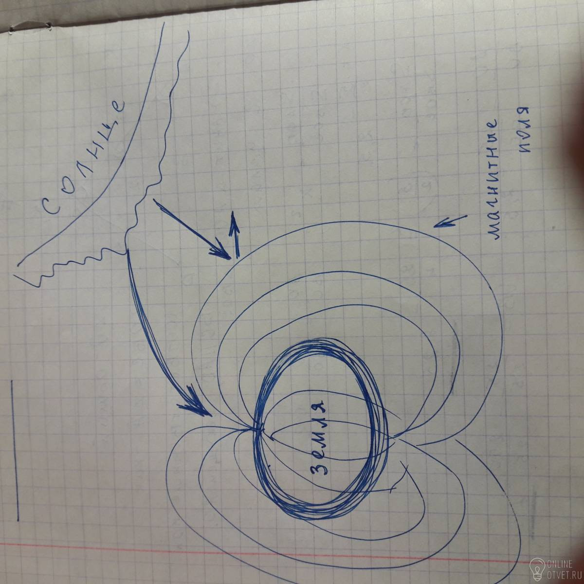 В космосе есть таеое явление, как солнечный ветер. Это поток частиц, выходящих из верних слоев звезды ( в нашем случае Солнца). Эти частицы с огромной скоростью устремляются на Землю. Но вокруг земли нагодится магнитное поле (магнитосфера). Она не дает пройти заряженным частицам сквозь и попасть на Землю. Она защищает планету. Но эта магнитосфера не цельная. Она выходит из полюсов ( см. рис.) На полюсах эта защита намного тоньше. Солнечный ветер способен с легкостью пройти сквозь магнитное поле. Входя в стратосферу, а потом и атмосферу заряженные частицы начинают излучать свет. Эти