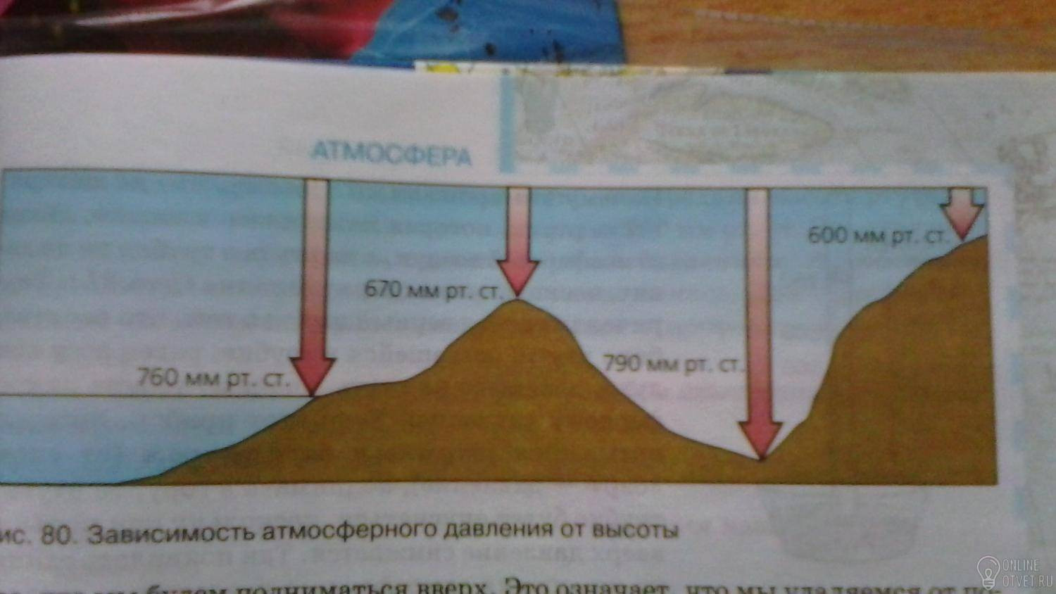 Чем больше по высоте столбик воздуха, тем больше масса, а значит больше и давление. Ведь давление - это сила, с которой воздух давит на земную поверхность
