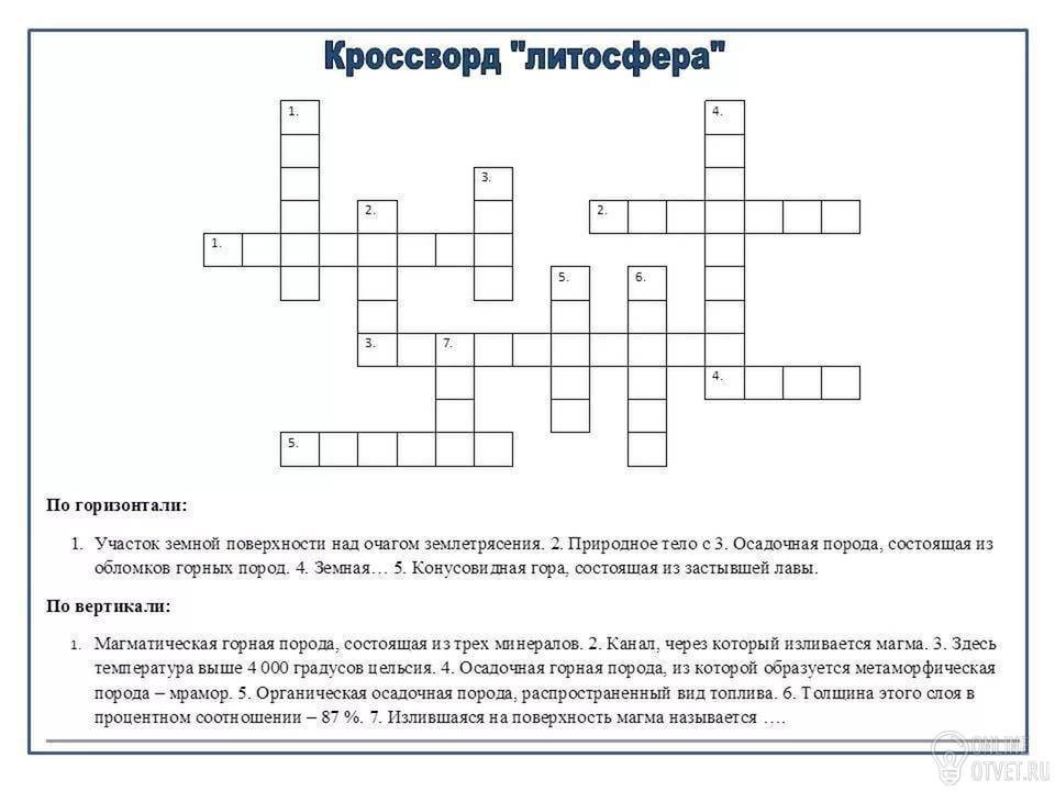 Сделать кроссворд на тему Литосфера с 10 вопросами.