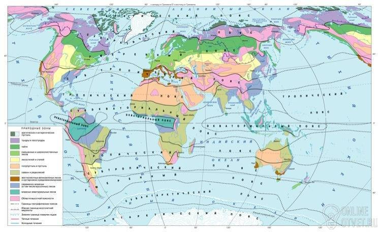 На контурную карту полушарий нанесите природные зоны мира. Закрасьте их разными цветами и подпишите их названия.