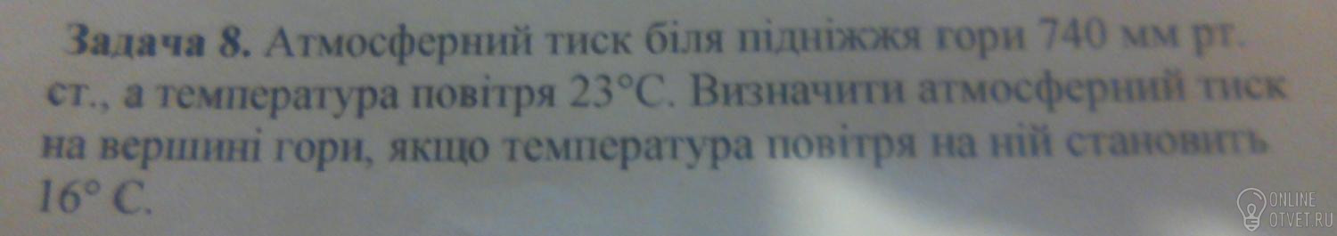 740 мм рт.ст.- 116,7 мм рт.ст=623,3 мм рт.ст -тиск на вершині