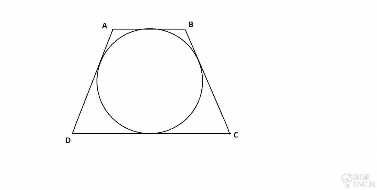 Т.к. около трапеции можно описать окружность, то сумма оснований равна сумме боковых сторон, т.е. AB + CD = AD + BC.