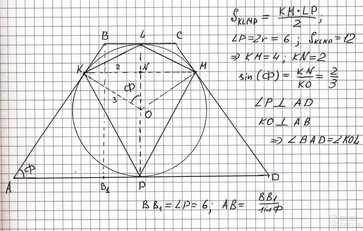 оКОЛО ОКРУЖНОСТИ ОПИСАНА РАВНОБОКАЯ ТРАПЕЦИЯ. бОКОВАЯ СТОРОНА РАВНА а, ОТРЕЗОК, СОЕДИНЯЮЩИЙ ТОЧКИ КАСАНИЯ БОКОВЫХ СТОРОН С ОКРУЖНОСТЬЮ РАВЕН b. наЙТИ ДИАМЕТР ТРАПЕЦИИ