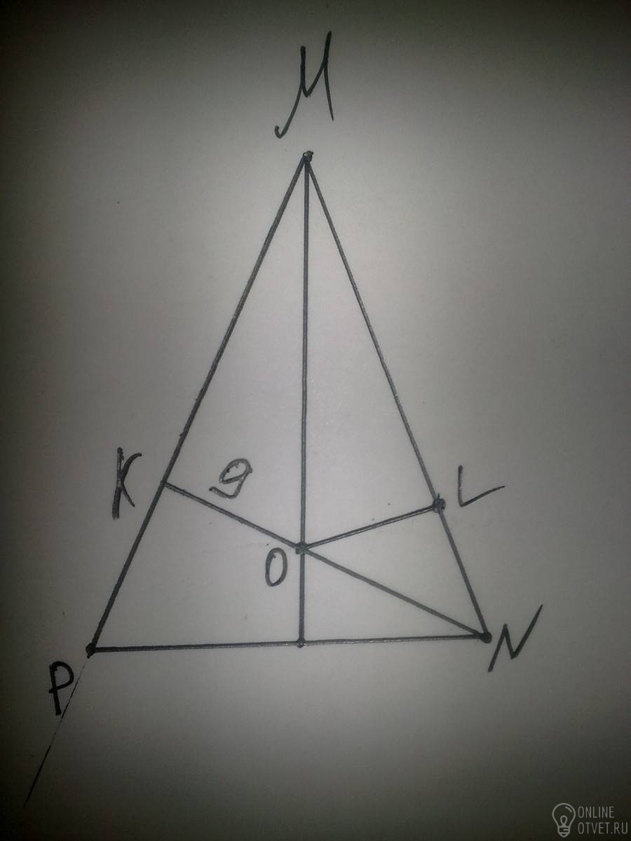 в остром треугольнике MNP биссектриса угла M пересекает высоту NK в точке O причём OK =9 СМ найти расстояние от точки O до прямой MN
