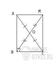 Рассмотрим прямоугольный треугольник ABC (угол B - прямой, BO - медиана). Продолжим BO, на линии отложим отрезок равный BO: OM (рисунок прилагается). Соединим точку M с точками A и C. Получится четырехугольник ABCM. Рассмотрим треугольники AOM и COB:
