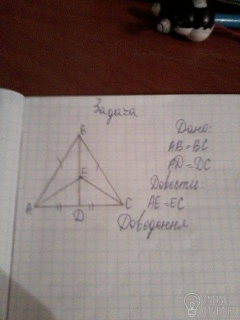 так как AD = DC, ED - общая, угол EDA = угол EDC, то треугольники AED и CED - равные, следовательно AE = EC