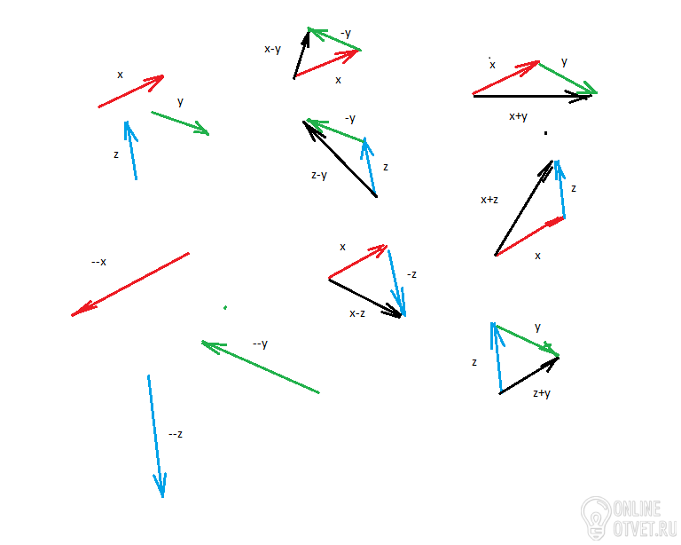 постройте векторы х-у , z-y , x-z, --х, --у,--z.