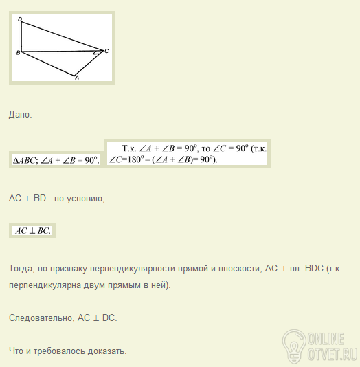 в треугольнике АВС сумма углов А и В равна 90 градусов. Прямая ВД перпендикулярна к плоскости АВС. Докажите, что СД перпендикулярна АС