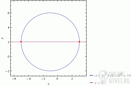 Окружность задана уравнением (x+1)^2+(y-2)^2=16. Напиши уравнение прямой, проходящей через ее центр и параллельной оси абсцисс.