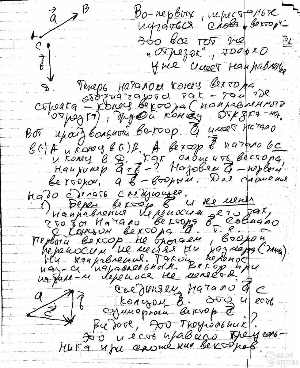 Обьясните, какой вектор называется суммой двух векторов? В чём заключается правило теугольника сложения двух векторов?