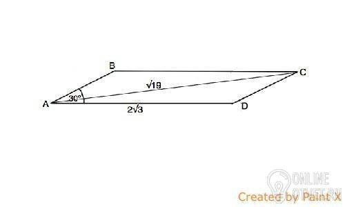 сторона АD=2√3, диагональ АС=√19, ∠ ВАD=30°