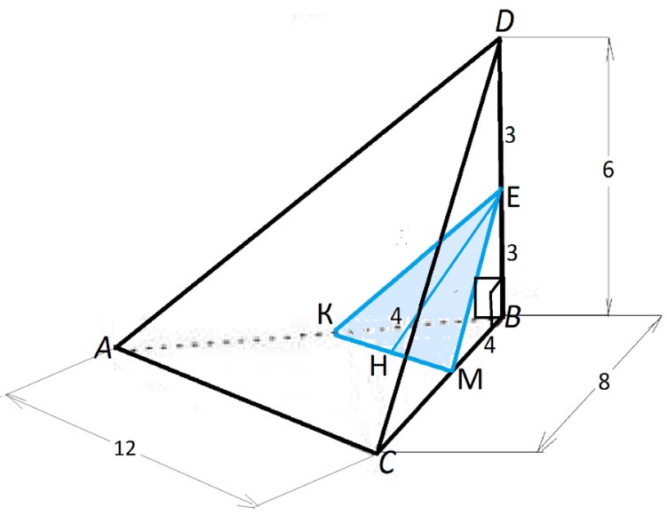 в тетраэдре dabc угол dba = dbc 90 , db=6 ab=bc=8 ac=12построить сечение тетраэдра плоскостью проходящую через середину bd и параллельную плоскости adc