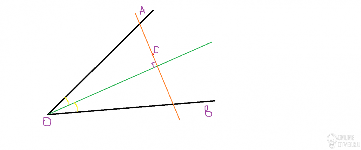 Дан угол АОВ и точка С внутри него . Постройте прямую , которая проходит через точку С и пересекает лучи ОА и ОВ под равными углами.