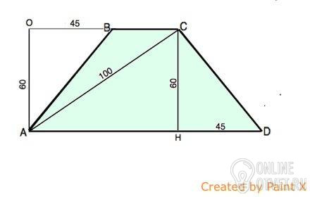 ABCD - равнобедренная трапеция. Диагональ AC = 100 мм, высота АО = 60 мм, ОВ = 45 мм. Найдите площадь трапеции. Помогите решить, пожалуйста)