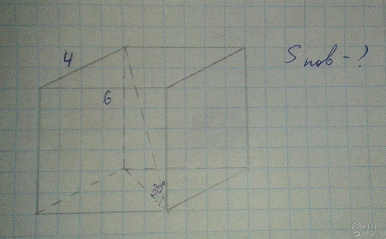 диагональ равна 12 через синус острого угла пр. треуг. по теореме пифагора найдем ребро 144-36= корень из 108, ну и потом находите площадь умн 6 на кореньиз 108 потом на 2 6умн на 4 =24 24умн на 2=48. потом 4 ум на корень из 108 и опять на 1 все результты сложить и все