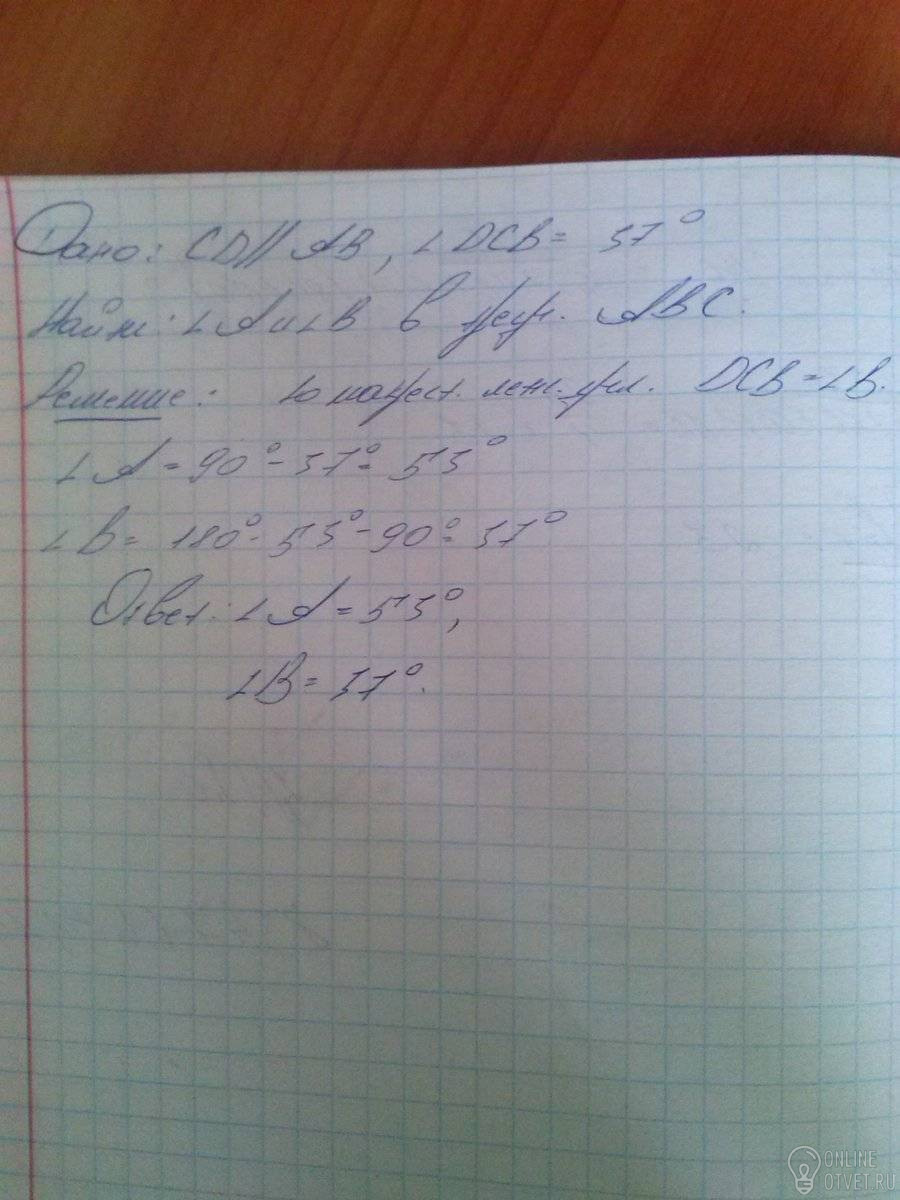 через вершину прямого угла c,треугольника abc проведена прямая cd паролельна ab угол dcb равен 37 градусов найти угол A и B в треугольнике ABC (помогите пожалуйста)