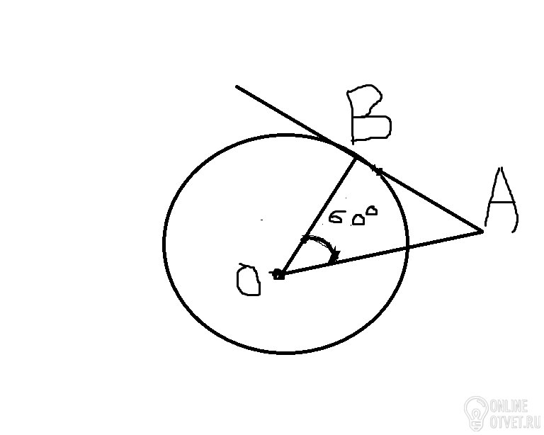 Знаю точно что треугольник ABO - равнобедренный (по св касательных) => угол О = углу В = углу А => A u B по 60 градусов